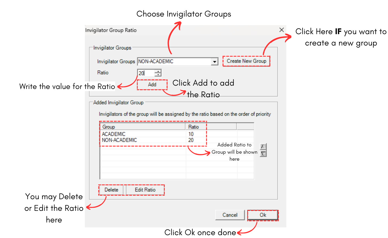Diagram 2.7 Invigilator Group Ratio Window