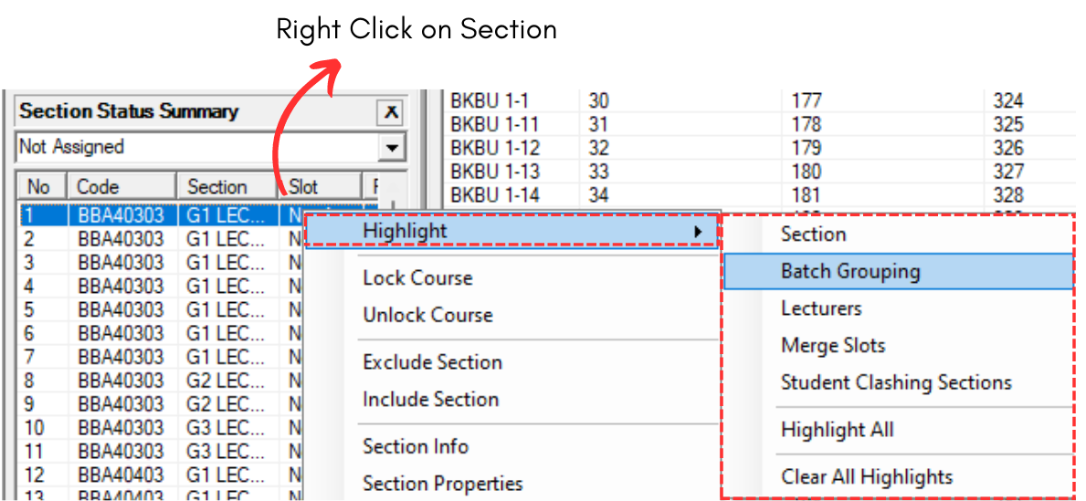 You can also highlight more than one colour in the timetable output. For example, we highlight the Batch and Lecturer. But note that, you have to do one by one.