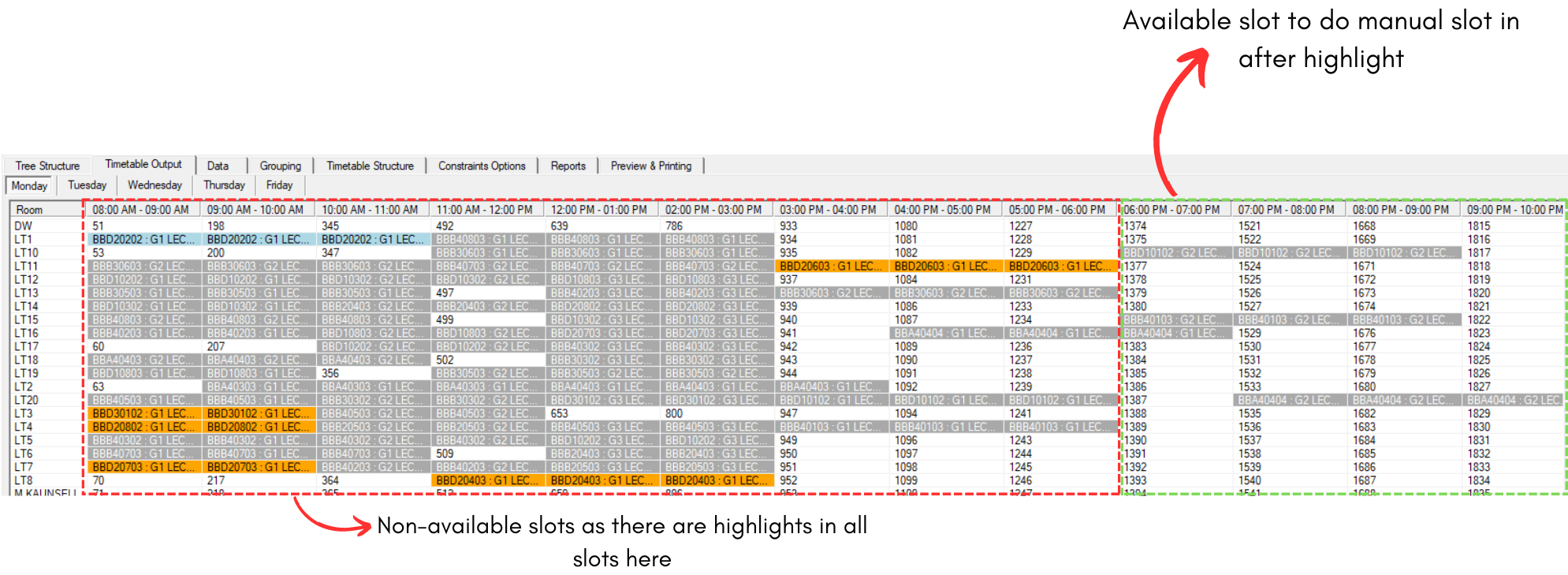 VIII. Highlight in Timetable Output