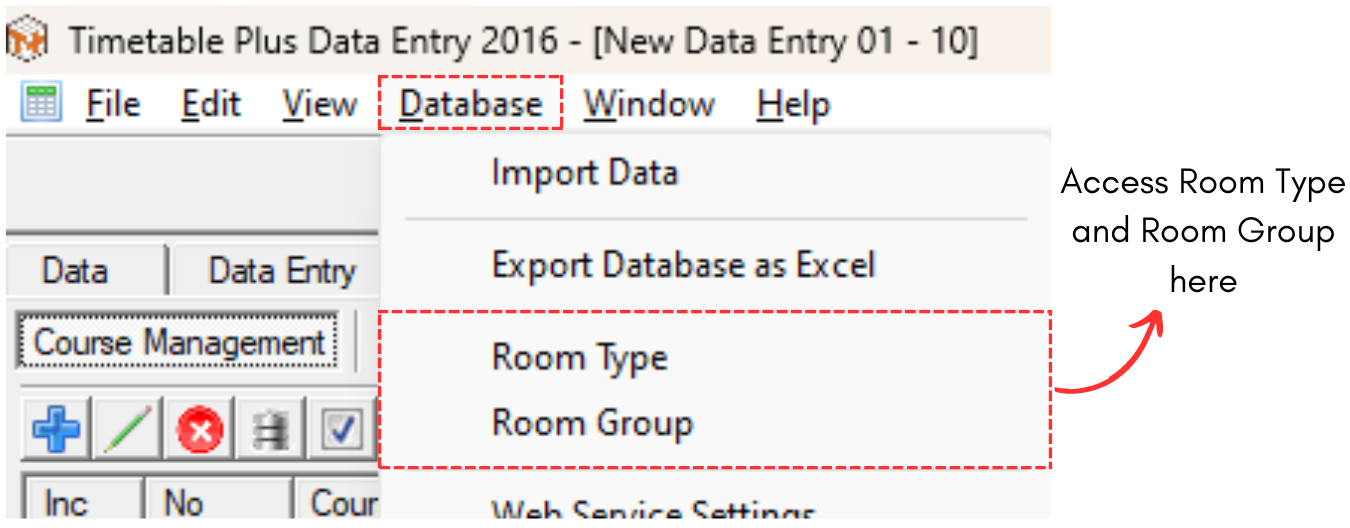 To access the database of Room Type and Room Group, you may go to Database Menu and select Room Type and Room Group there.