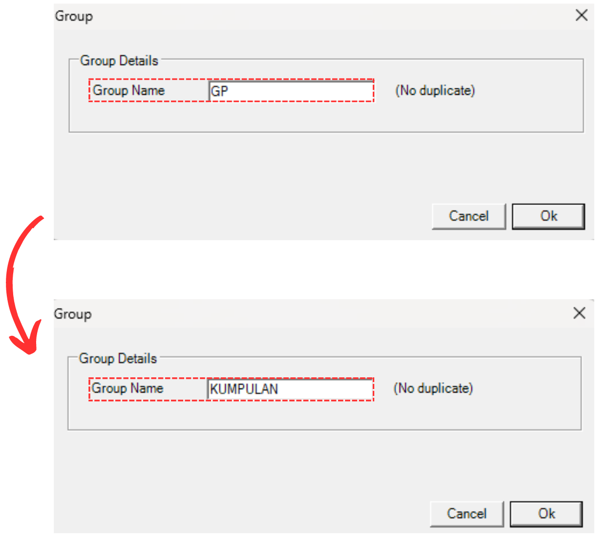 STEPS 3: Edit the Group Details. For Example, we change from GP to KUMPULAN