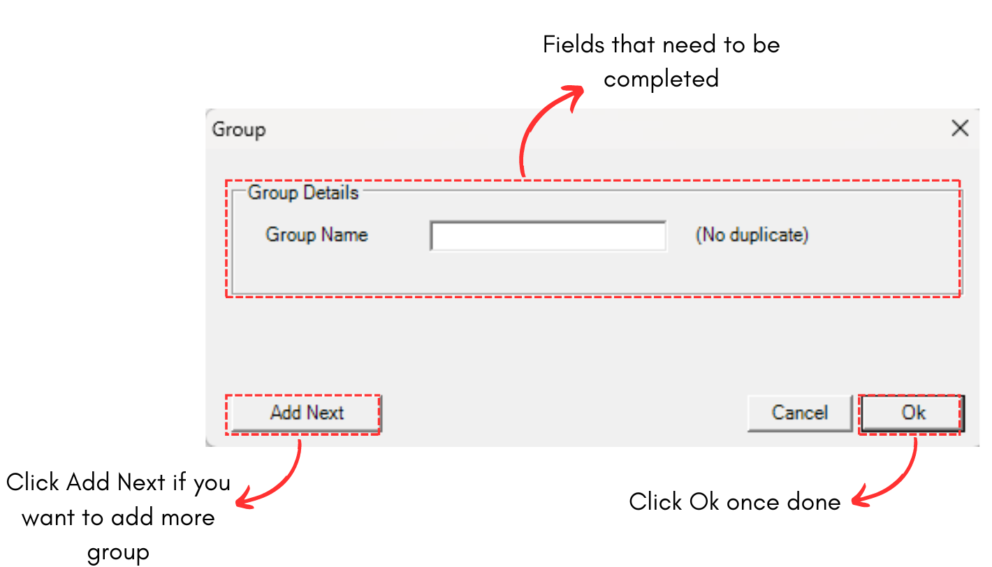 STEPS 1: To Add new group, click on the icon Add Group. ![]()