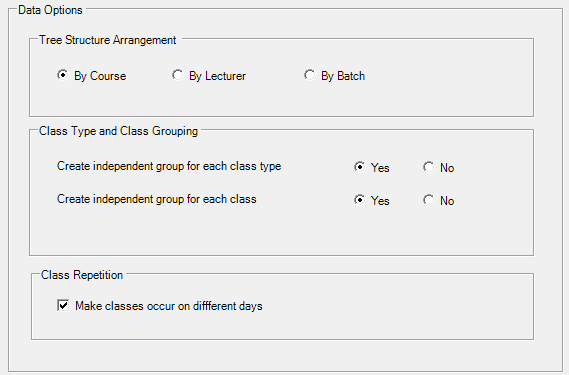 In Data Options, there are 3 more separated sections that need to be considered.1. Tree Structure Arrangement