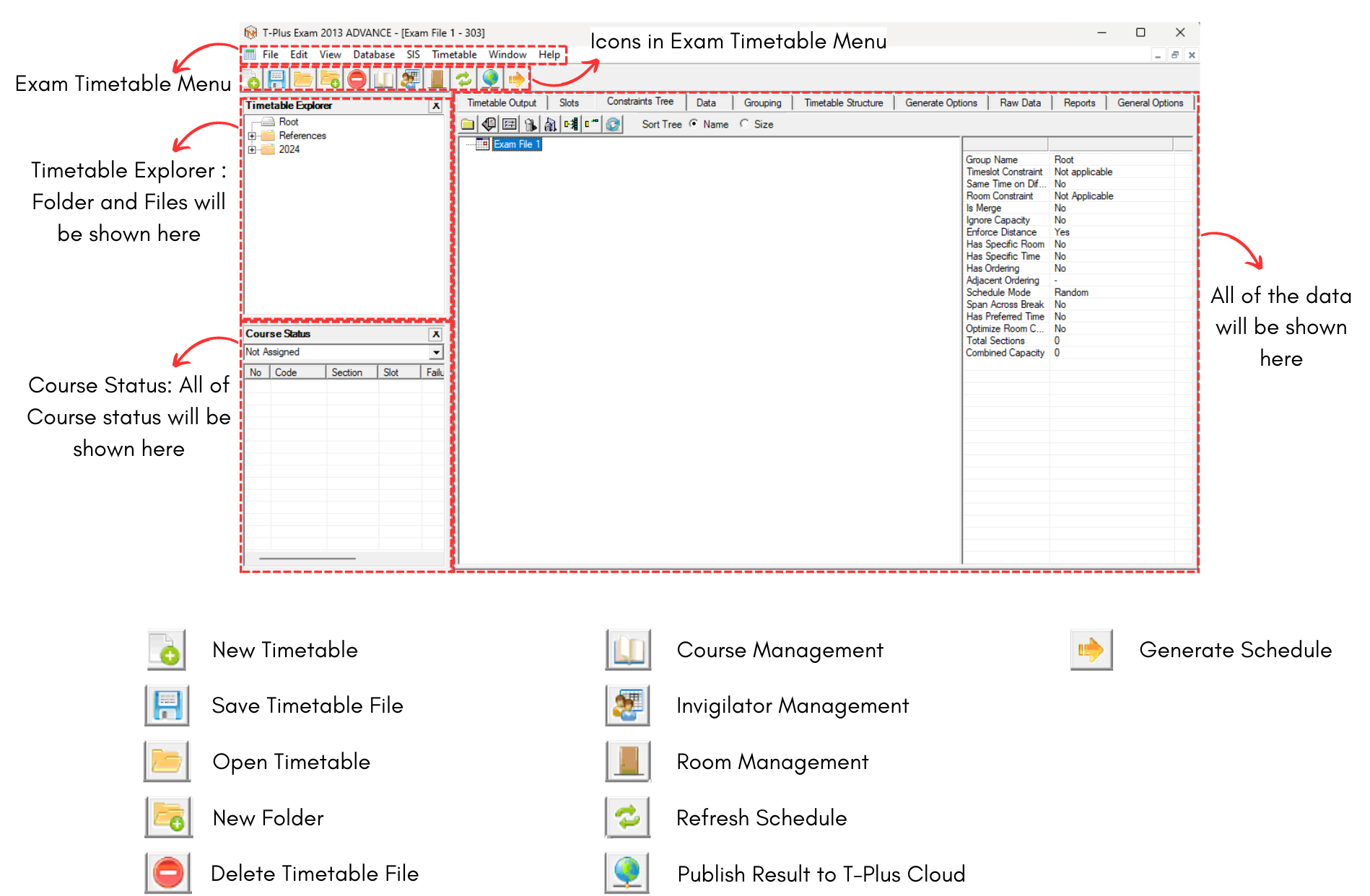 Below is the Icons and Menu in Timetable Plus Exam