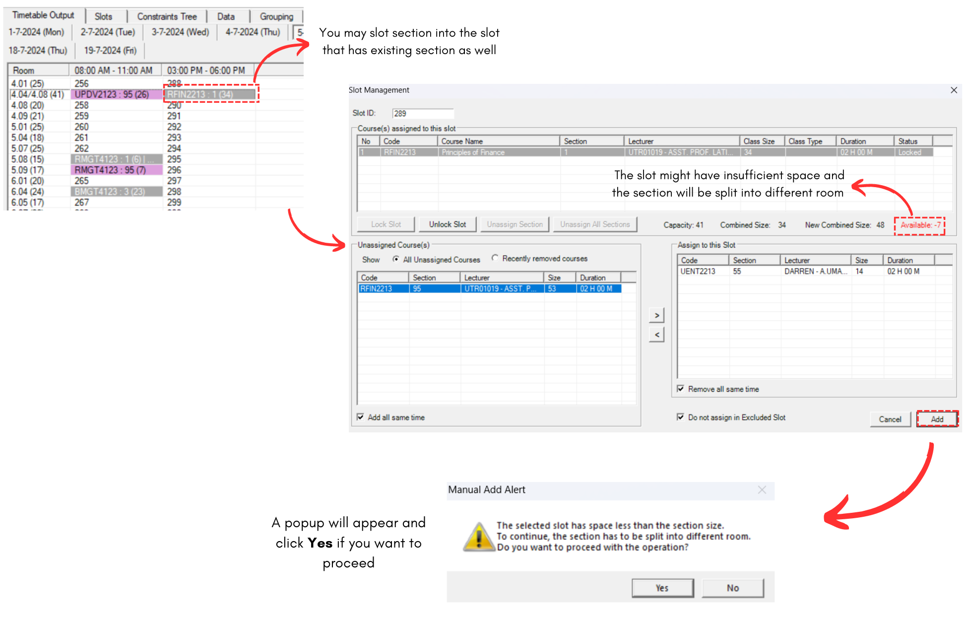 ADDITIONAL NOTE: You may also slot the section into the existing slot as long as there is no clashing section. This steps usually used to ensure all venues for examination are being filled perfectly.