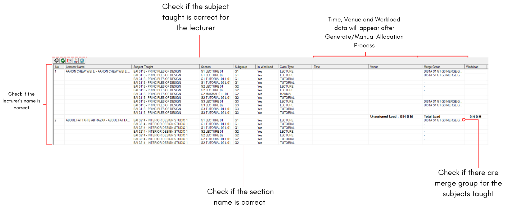 IMPORTANT NOTE: It is Important to check or revise the Lecturer's Workload as it might differ from previous since Merge Group or Same Time Group added.