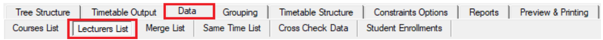 To locate the Lecturer List, you may go to Data and select Lecturer List.