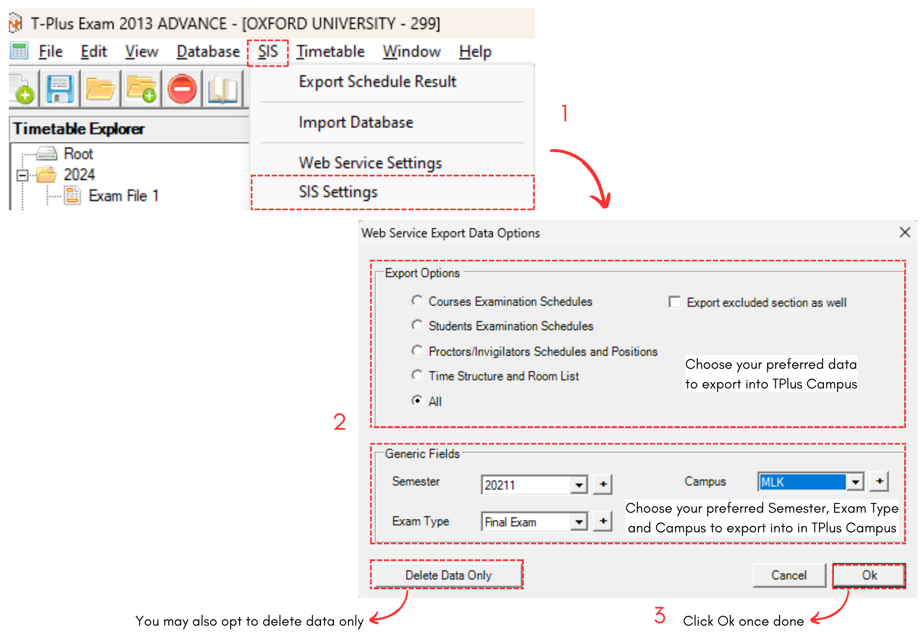 To export to TPlus Campus, there are 3 simple steps to do so.