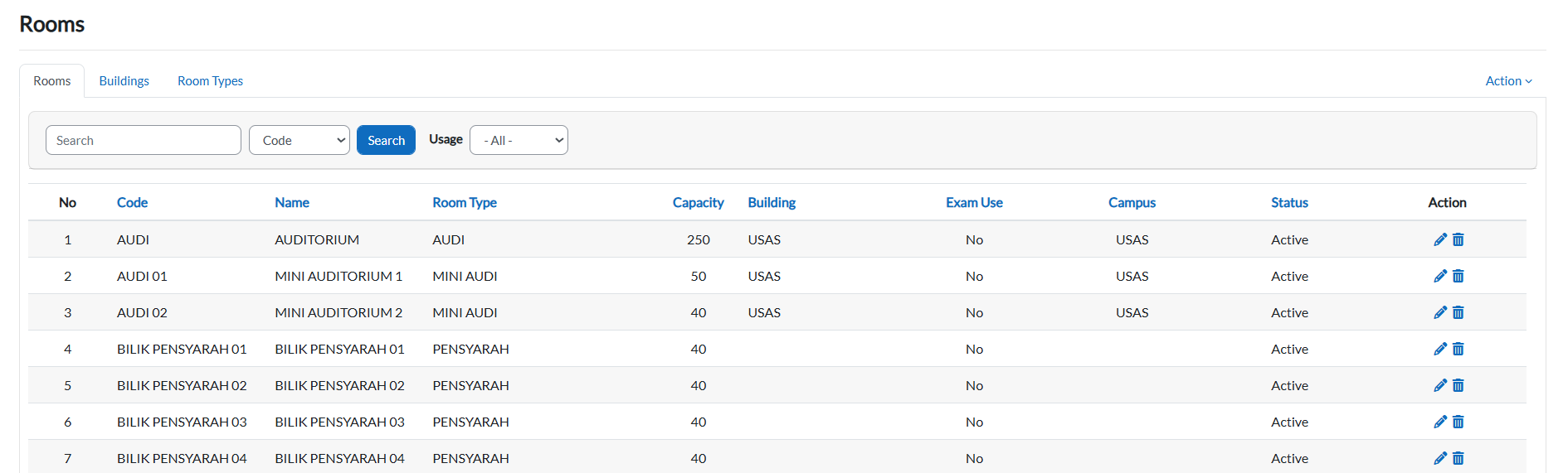 This section will guide you through managing rooms, buildings, and room types in Timetable Plus Campus.