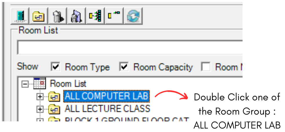 Note that when you select a room group, you will be able to see buttons on the right side of the Room Grouping Window.