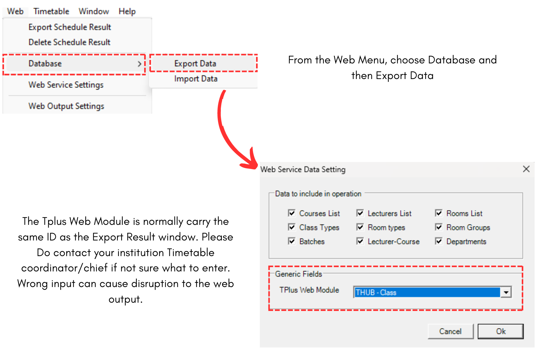 Diagram 2.3.1 Location on Exporting to Timetable Plus Web