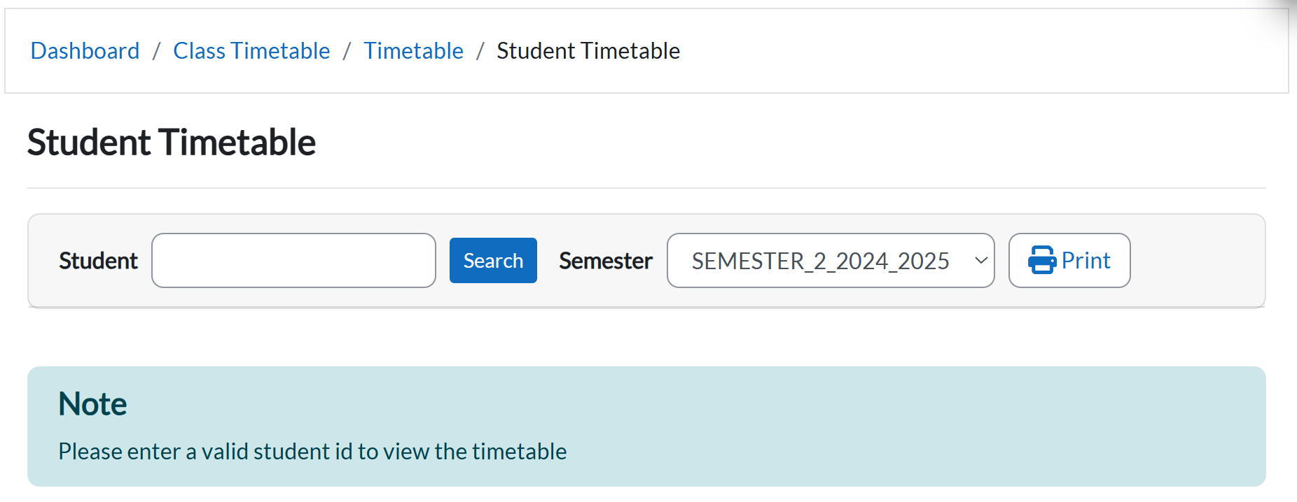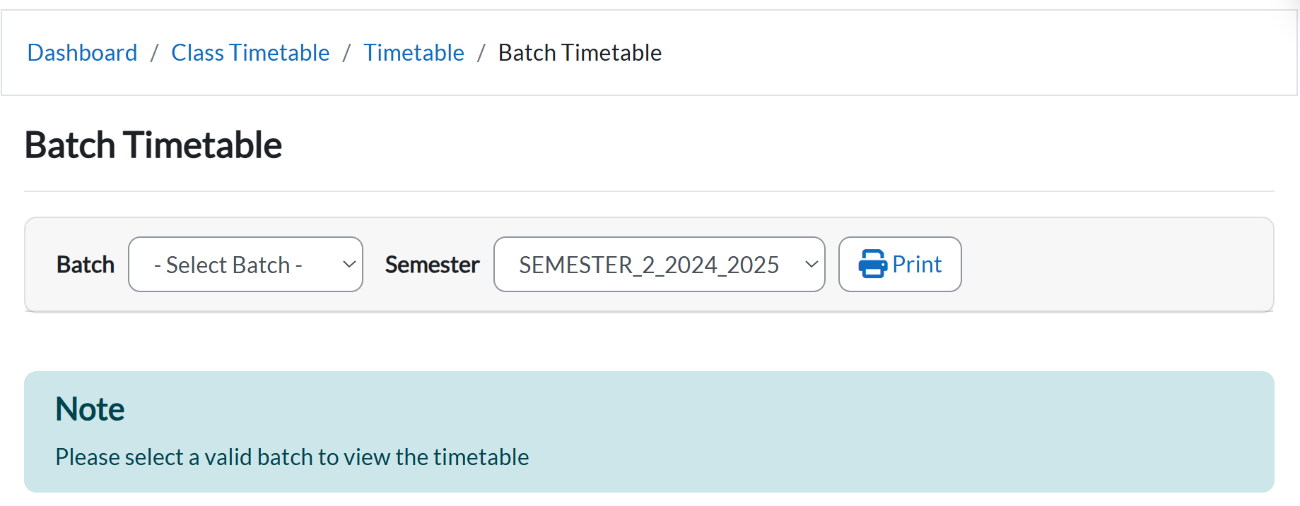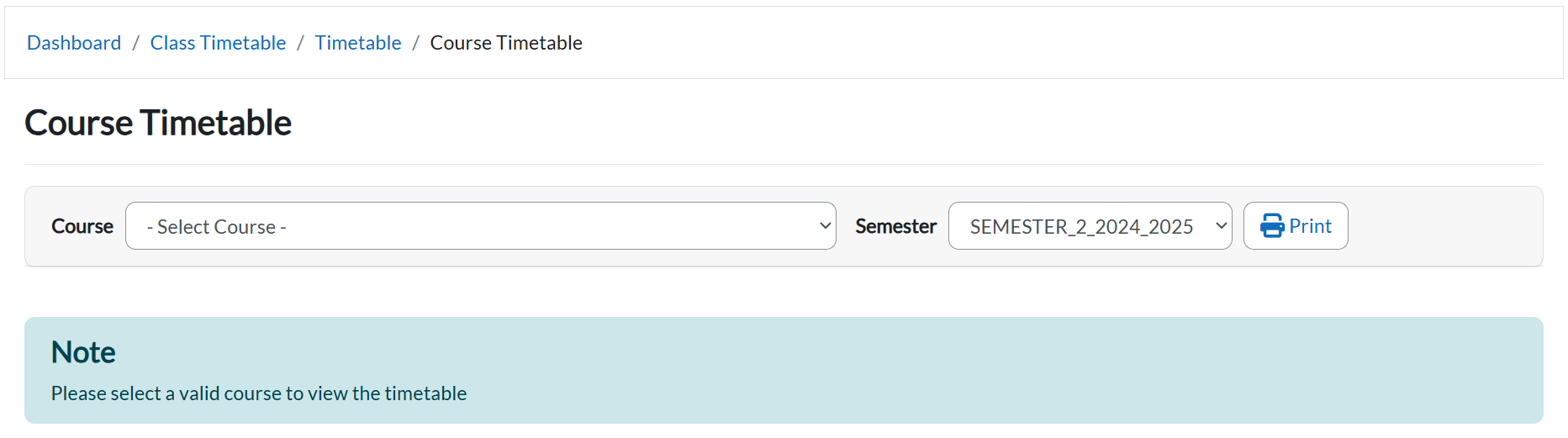 After logging in, you will be directed to the Dashboard and locate the Class Timetable card on the dashboard.