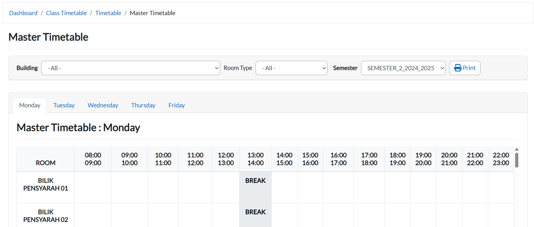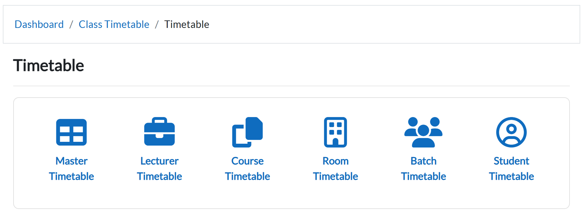 The Class Timetable Card in Timetable Plus Campus allows administrators and faculty to view timetables in different formats and manage class schedules. This section is accessible from the main dashboard after logging in.