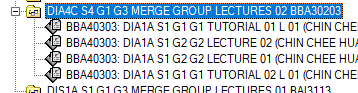 To rename, you can select the merge group folder and click once again. OR you can right click and select Rename Group. For Example, we rename the new group as "DIA4C S4 G1 G3 MERGE GROUP LECTURES 02 BBA30203".