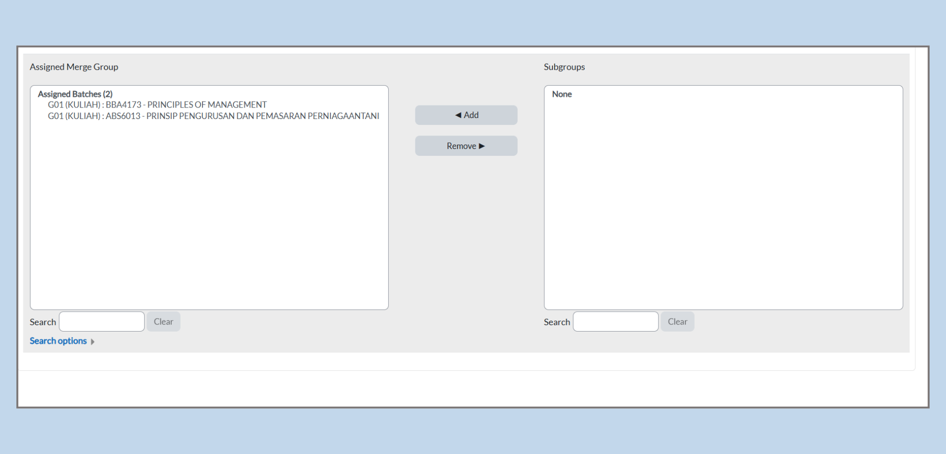 Once a subgroup has been created, administrators can further manage it by assigning batches of students. Thus ensures that the correct students are allocated to the appropriate subgroup.